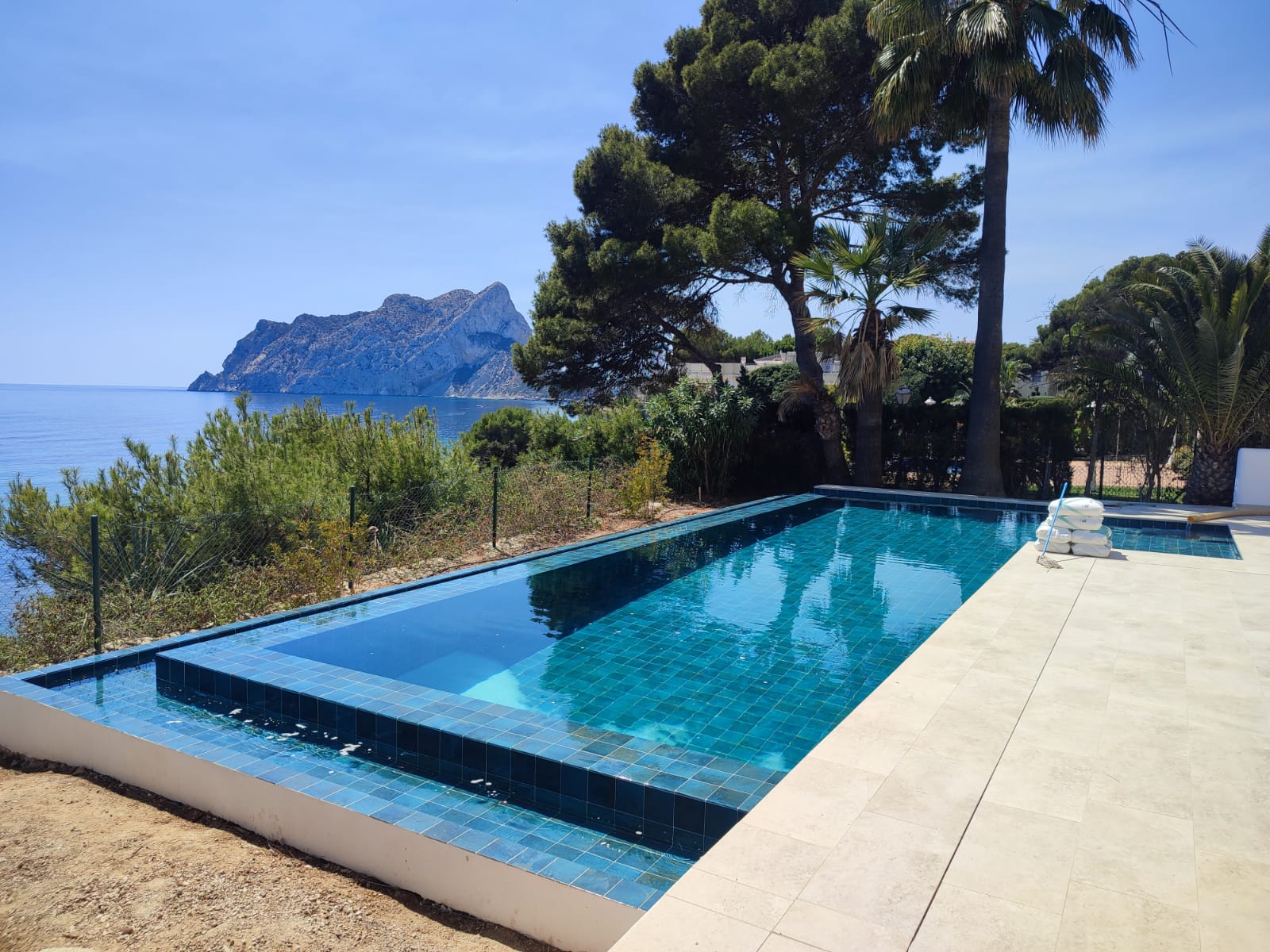 El proyecto se compuso de una piscina tipo infinity, concebida para integrarse en el entorno y potenciar la sensación de continuidad visual con el paisaje.